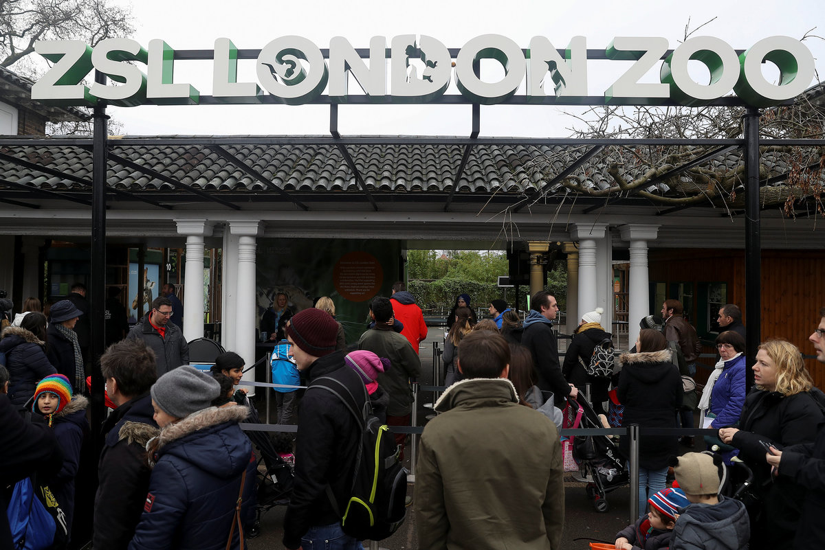 Customers queue to enter London Zoo as it reopens following a fire which broke out at a shop and cafe at the attraction, in central London, Britain December 24, 2017. REUTERS/Simon Dawson
