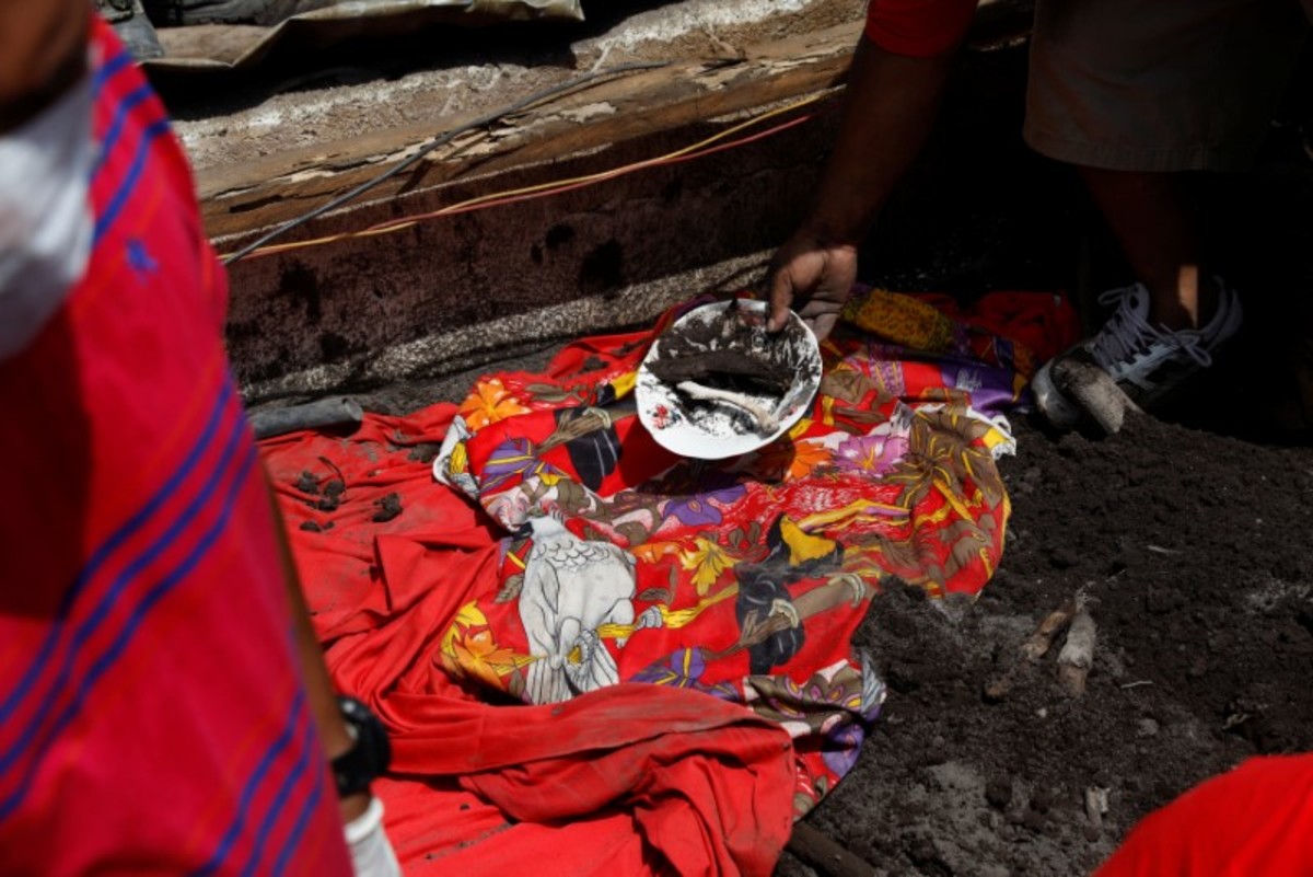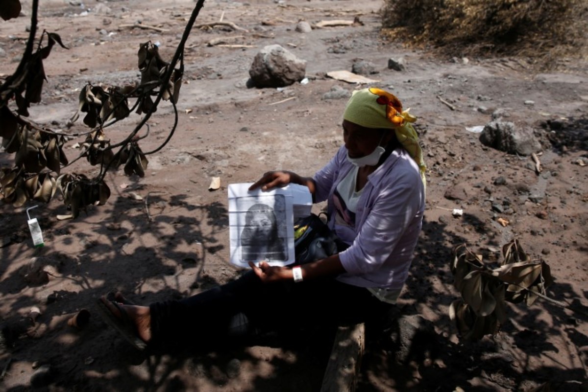 Rescue workers search the house of one of Eufemia Garcia's missing sisters in an area affected by the Fuego volcano at San Miguel Los Lotes in Escuintla, Guatemala, June 14, 2018. REUTERS/Carlos Jasso Eufemia Garcia, 48, who lost 50 members of her family during the eruption of the Fuego volcano, outlines her land while searching for her family in San Miguel Los Lotes in Escuintla, Guatemala, June 15, 2018. REUTERS/Carlos Jasso Eufemia Garcia, 48, who lost 50 members of her family during the eruption of the Fuego volcano, rests holding a shovel while searching for her family in San Miguel Los Lotes in Escuintla, Guatemala, June 15, 2018. REUTERS/Carlos Jasso Eufemia Garcia, 48, who lost 50 members of her family during the eruption of the Fuego volcano, sleeps next to her partner, Fito Perez, after searching for her family in in San Miguel Los Lotes Escuintla, Guatemala, June 14, 2018. REUTERS/Carlos Jasso Eufemia Garcia, 48, who lost 50 members of her family during the eruption of the Fuego volcano, observes soldiers carrying human remains found at her house in San Miguel Los Lotes in Escuintla, Guatemala, June 12, 2018. REUTERS/Carlos Jasso Eufemia Garcia, 48, who lost 50 members of her family during the eruption of the Fuego volcano, holds food as she walks to her town in search of her family on the outskirts of San Miguel Los Lotes in Escuintla, Guatemala, June 12, 2018. REUTERS/Carlos Jasso Eufemia Garcia, 48, who lost 50 members of her family during the eruption of the Fuego volcano, observes soldiers finding human remains at her house in San Miguel Los Lotes in Escuintla, Guatemala, June 12, 2018. REUTERS/Carlos Jasso Eufemia Garcia, 48, who lost 50 members of her family during the eruption of the Fuego volcano, takes a ride with other residents after a day spent searching for her family in Escuintla, Guatemala, June 13, 2018. REUTERS/Carlos JassoEufemia Garcia, 48, who lost 50 members of her family during the eruption of the Fuego volcano, stands beside a fridge containing the human remains found at the house of her father-in-law in San Miguel Los Lotes in Escuintla, Guatemala, June 12, 2018. REUTERS/Carlos Jasso Residents carry human remains found at the home of the father-in-law of Eufemia Garcia, 48, who lost 50 members of her family during the eruption of the Fuego volcano in San Miguel Los Lotes in Escuintla, Guatemala, June 12, 2018. REUTERS/Carlos Jasso ATTENTION EDITORS - VISUAL COVERAGE OF SCENES OF DEATH AND INJURY Human remains are found at the home of the father-in-law of Eufemia Garcia, 48, who lost 50 members of her family during the eruption of the Fuego volcano in San Miguel Los Lotes in Escuintla, Guatemala, June 12, 2018. REUTERS/Carlos Jasso Residents cover their noses as they help find remains at the home of the father-in-law of Eufemia Garcia, 48, who lost 50 members of her family during the eruption of the Fuego volcano in San Miguel Los Lotes in Escuintla, Guatemala, June 12, 2018. REUTERS/Carlos Jasso Eufemia Garcia, 48, who lost 50 members of her family during the eruption of the Fuego volcano, rests at a shelter after a long day searching for her family in Escuintla, Guatemala, June 14, 2018. REUTERS/Carlos Jasso SEARCH "EUFEMIA MISSING" FOR THIS STORY. SEARCH "WIDER IMAGE" FOR ALL STORIES.Eufemia Garcia, 48, who lost 50 members of her family during the eruption of the Fuego volcano, is examined by a doctor after a long day searching for her family in Escuintla, Guatemala, June 14, 2018. REUTERS/Carlos Jasso A rescue worker holds a tooth found amongst the remains of the house owned by Eufemia Garcia's sister, in San Miguel Los Lotes in Escuintla, Guatemala, June 13, 2018. Garcia, 48, lost 50 members of her family during the eruption of the Fuego volcano. REUTERS/Carlos Jasso Eufemia Garcia, 48, who lost 50 members of her family during the eruption of the Fuego volcano, cries on the phone while searching for her family in San Miguel Los Lotes in Escuintla, Guatemala, June 11, 2018. REUTERS/Carlos Jasso Eufemia Garcia, 48, who lost 50 members of her family during the eruption of the Fuego volcano, looks at papers while searching for her family in San Miguel Los Lotes in Escuintla, Guatemala, June 12, 2018. REUTERS/Carlos Jasso ATTENTION EDITORS - VISUAL COVERAGE OF SCENES OF DEATH AND INJURY Residents help excavate human remains found at the home of the father-in-law of Eufemia Garcia, 48, who lost 50 members of her family during the eruption of the Fuego volcano in San Miguel Los Lotes in Escuintla, Guatemala, June 12, 2018. REUTERS/Carlos JassoATTENTION EDITORS - VISUAL COVERAGE OF SCENES OF DEATH AND INJURY Residents take out human remains found at the home of the father-in-law of Eufemia Garcia, 48, who lost 50 members of her family during the eruption of the Fuego volcano in San Miguel Los Lotes in Escuintla, Guatemala, June 12, 2018. REUTERS/Carlos Jasso Eufemia Garcia, 48, who lost 50 members of her family during the eruption of the Fuego volcano, searches for her family in San Miguel Los Lotes in Escuintla, Guatemala, June 13, 2018. REUTERS/Carlos Jasso Eufemia Garcia, 48, who lost 50 members of her family during the eruption of the Fuego volcano, observes a volunteer who is aiding her in the search for her family in San Miguel Los Lotes in Escuintla, Guatemala, June 11, 2018. REUTERS/Carlos Jasso Eufemia Garcia, 48, who lost 50 members of her family during the eruption of the Fuego volcano, sits with other residents outside the morgue in Escuintla, Guatemala, June 11, 2018. REUTERS/Carlos Jasso