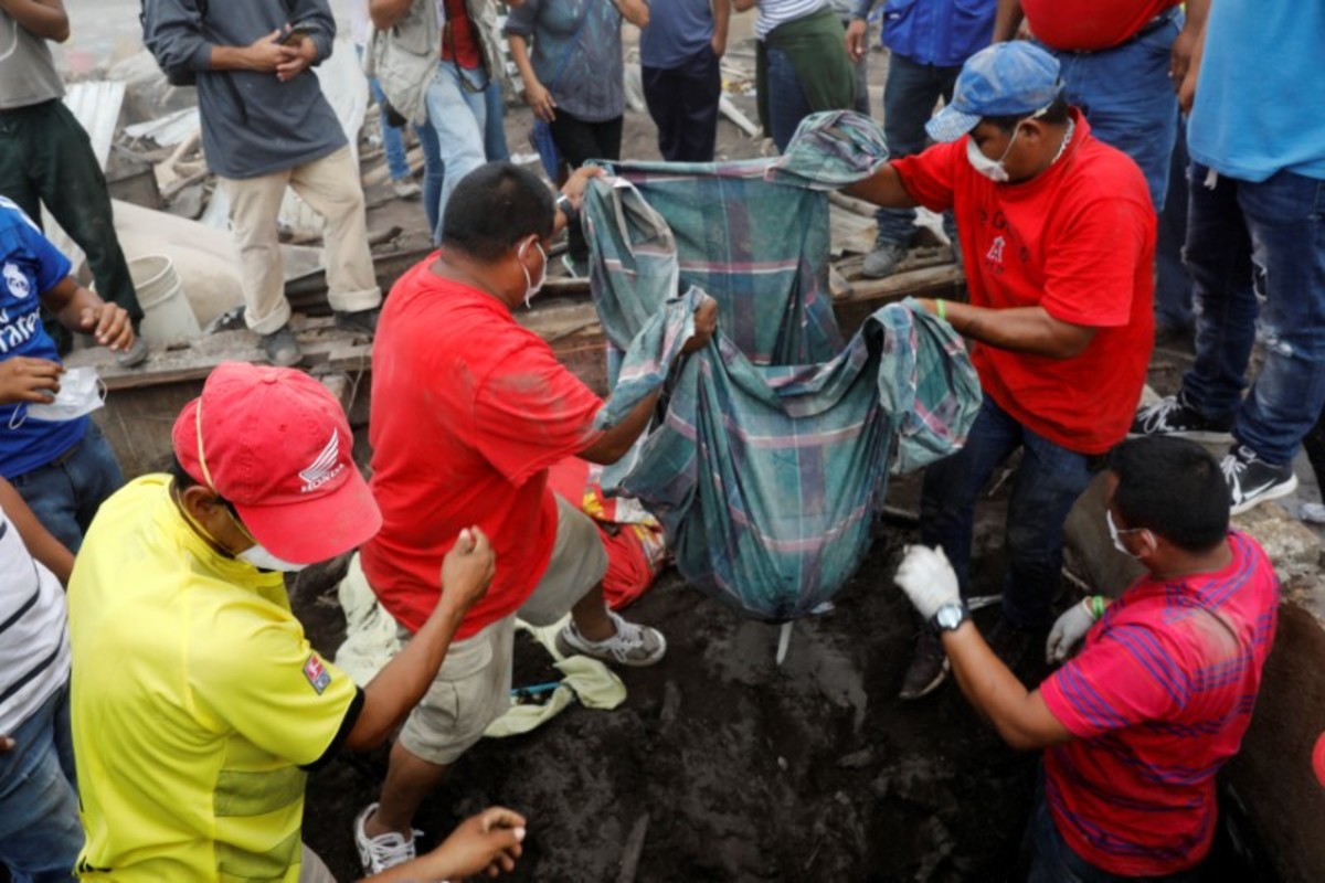 Mexican volunteer rescue workers grabbed their shovels and rushed in to recover the body from the rubble and dust.