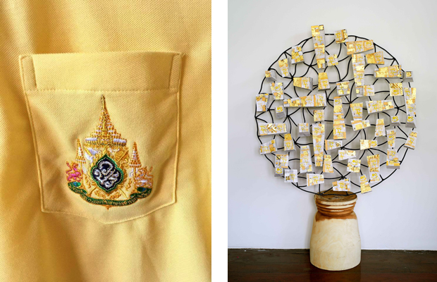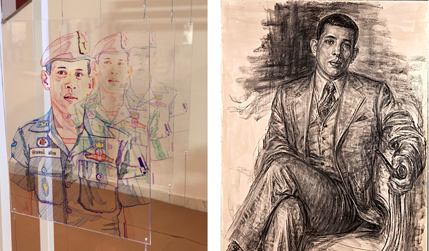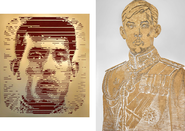 The two shopping malls joins forces with Government Savings Bank to hold a contemporary exhibition titled “Under His Peaceful Reign, Praise The King”, featuring 10 works by five Thai artists. Each expresses their gratitude and loyalty in their own style. Sakwut Wisesmanee's The Tenth Reign is a stunning portrait series of the King. Jitsing Somboon pays homage by creating a stencil of the King's face as he regards the King as a role model. Lik Sriprasert's two artworks are entitled Long Live The King and use the ancient rai rod nam lacquer technique on a mirror set slightly above the viewers' heads. Chalit Nakpawan uses a new technique in his installations. Amrit Chusuwan uses beautiful drawings of the King in two mixed media pieces. Visitors get a complimentary poster-size image of an art piece. The exhibition runs until May 12. The giant LED screen at Quartier Parc will screen the live broadcast of the Royal Ceremonies from May 4-6. A candle vigil will be held on May 6 at Quartier Parc at 7pm.