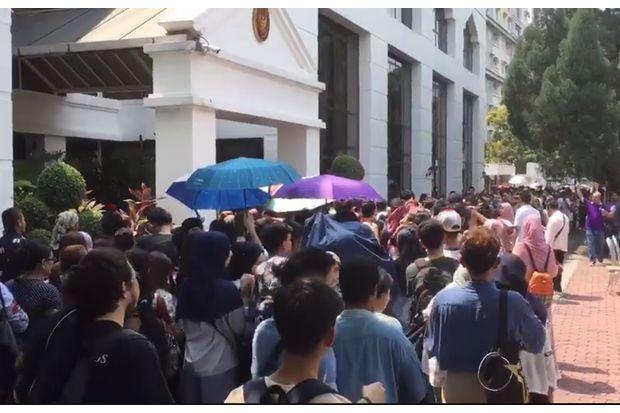 The queues to cast advance votes in the March 24 general election snake outside the embassy in Kuala Lumpur, forcing people to wait outside in the heat. A few people reportedly fainted.