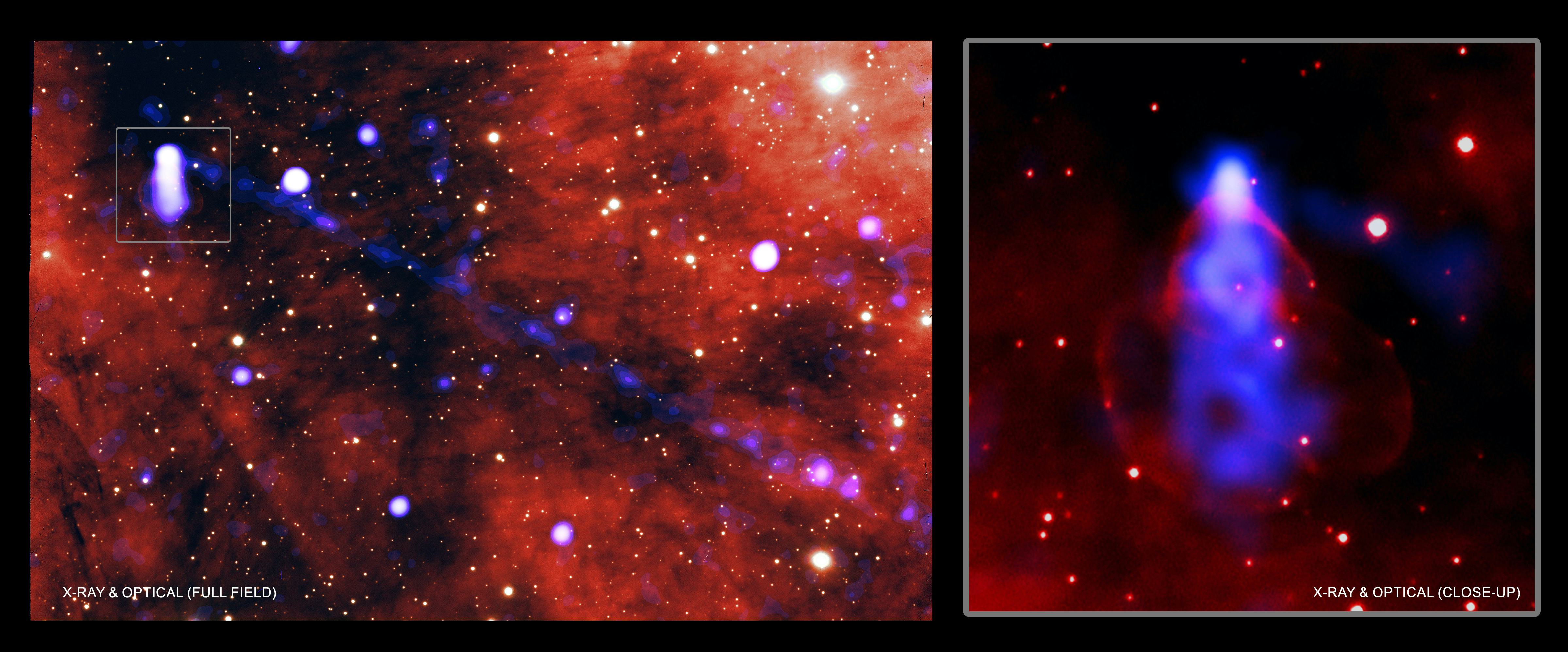 As the particles floated through along the interstellar magnetic field line at about one-third the speed of light, they lit up in X-rays, resulting in the long beam seen by the astronomers.