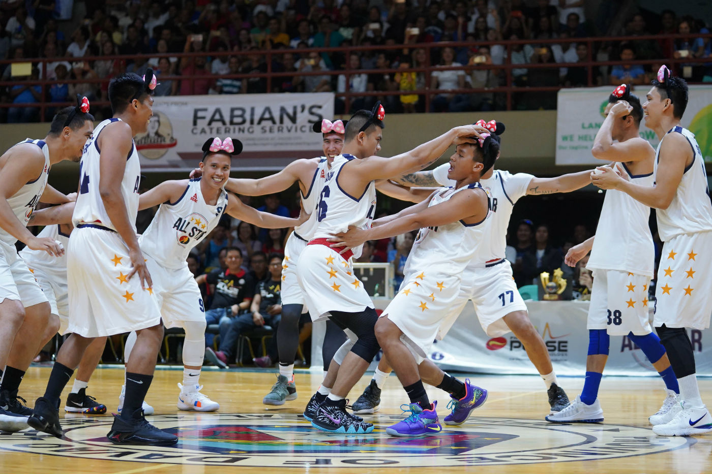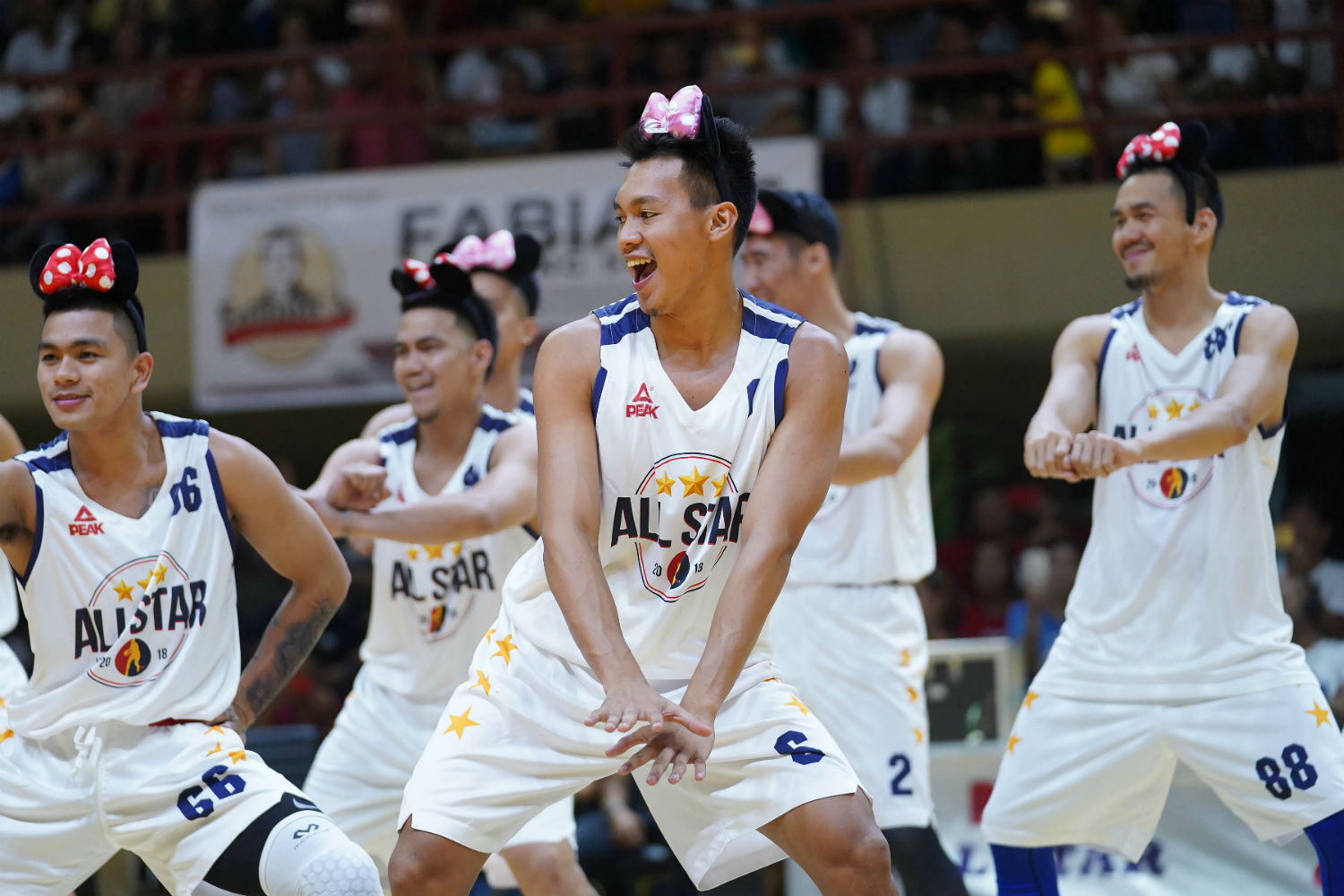 Led by Magnolia Hotshots' Jio Jalalon and Barangay Ginebra's Scottie Thompson, the Minnie Mouse headband-clad All-Star team delighted the crowd at the Davao del Sur Coliseum with their dance moves.