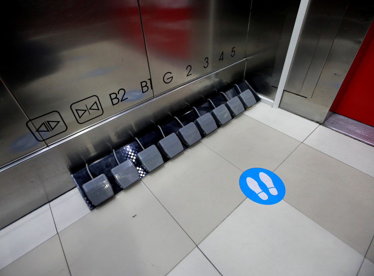 A mall in Thailand has swapped lift buttons for foot pedals in an effort to prevent the spread of the coronavirus as well as help restore normalcy and get shoppers spending again.