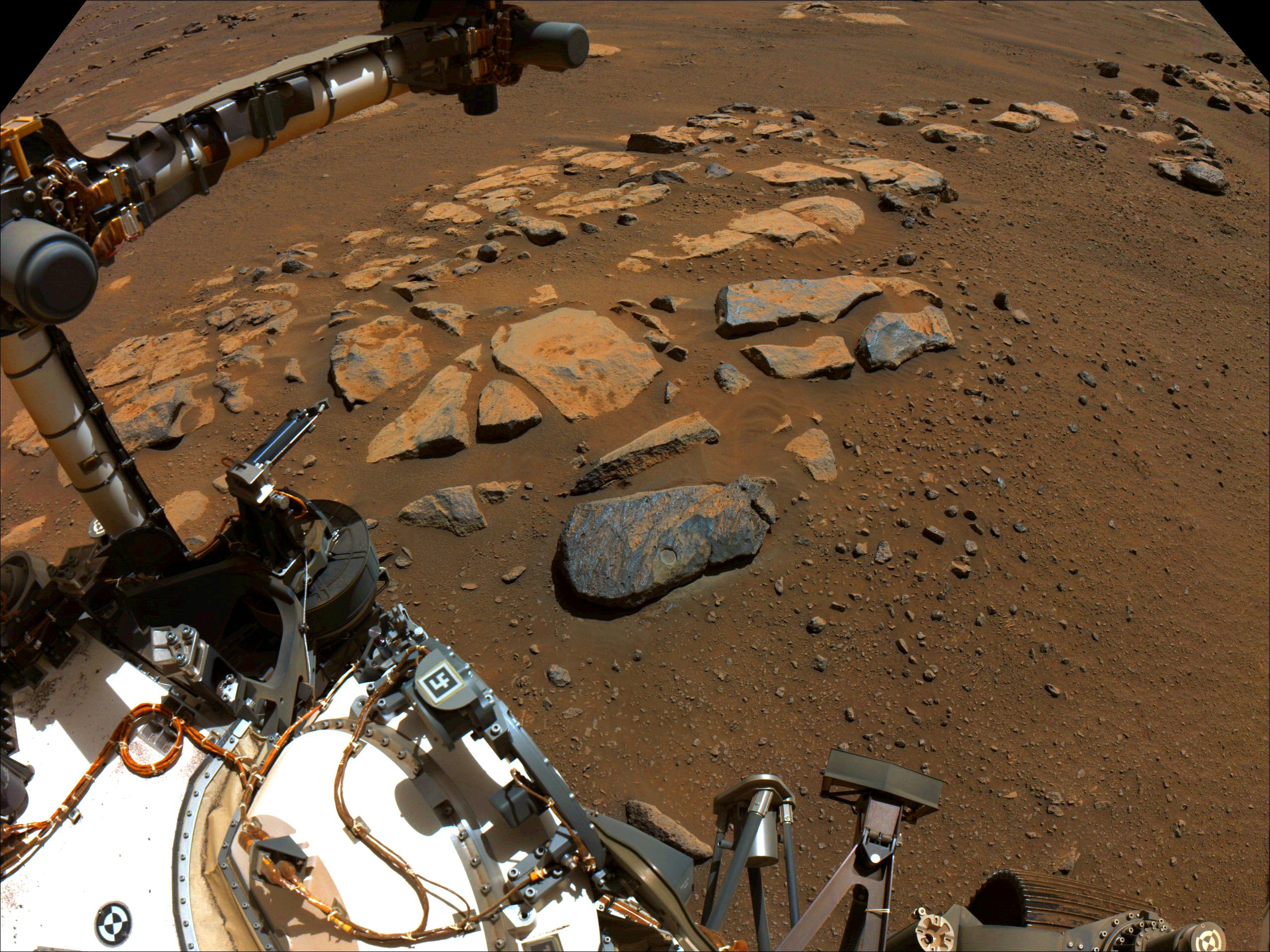 Perseverance had just scraped away a circular piece of the rock that the team nicknamed Bellegarde. The patch is about 0.39 inches deep and about 2 inches wide.