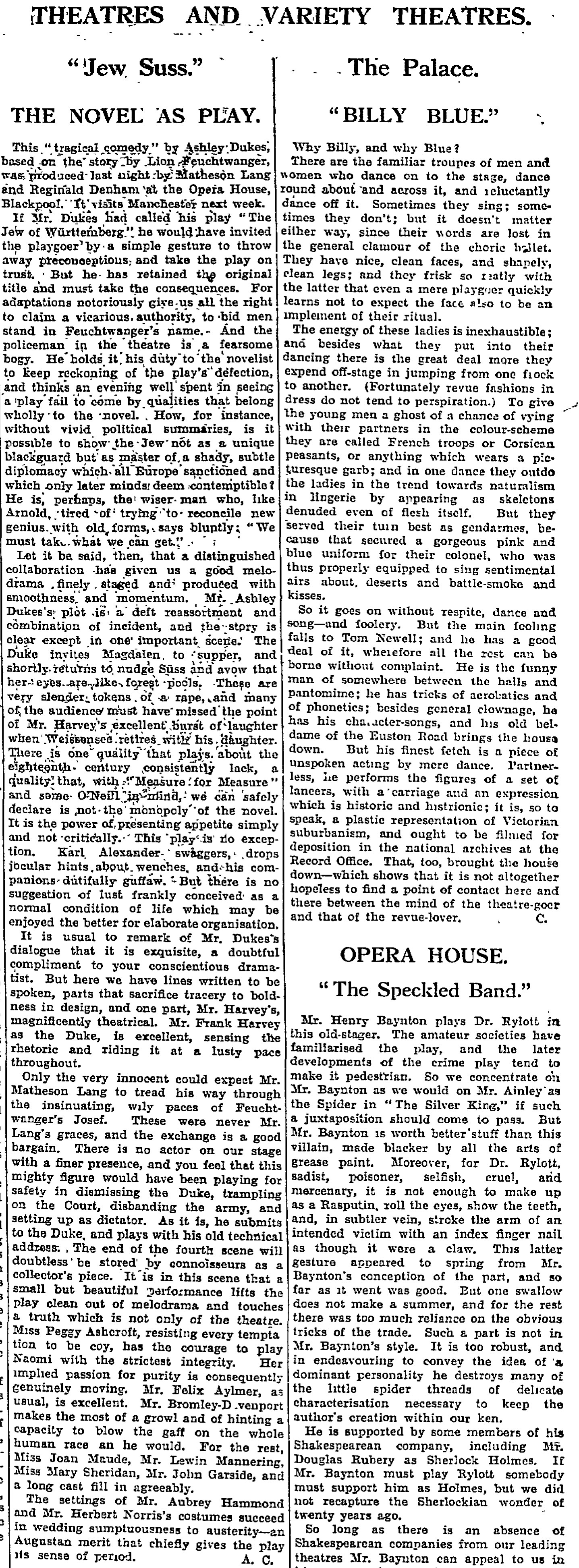His first piece for the Manchester Guardian - a theatre review of Jew Suss, starring Peggy Ashcroft, in 1929 - was as a freelancer.