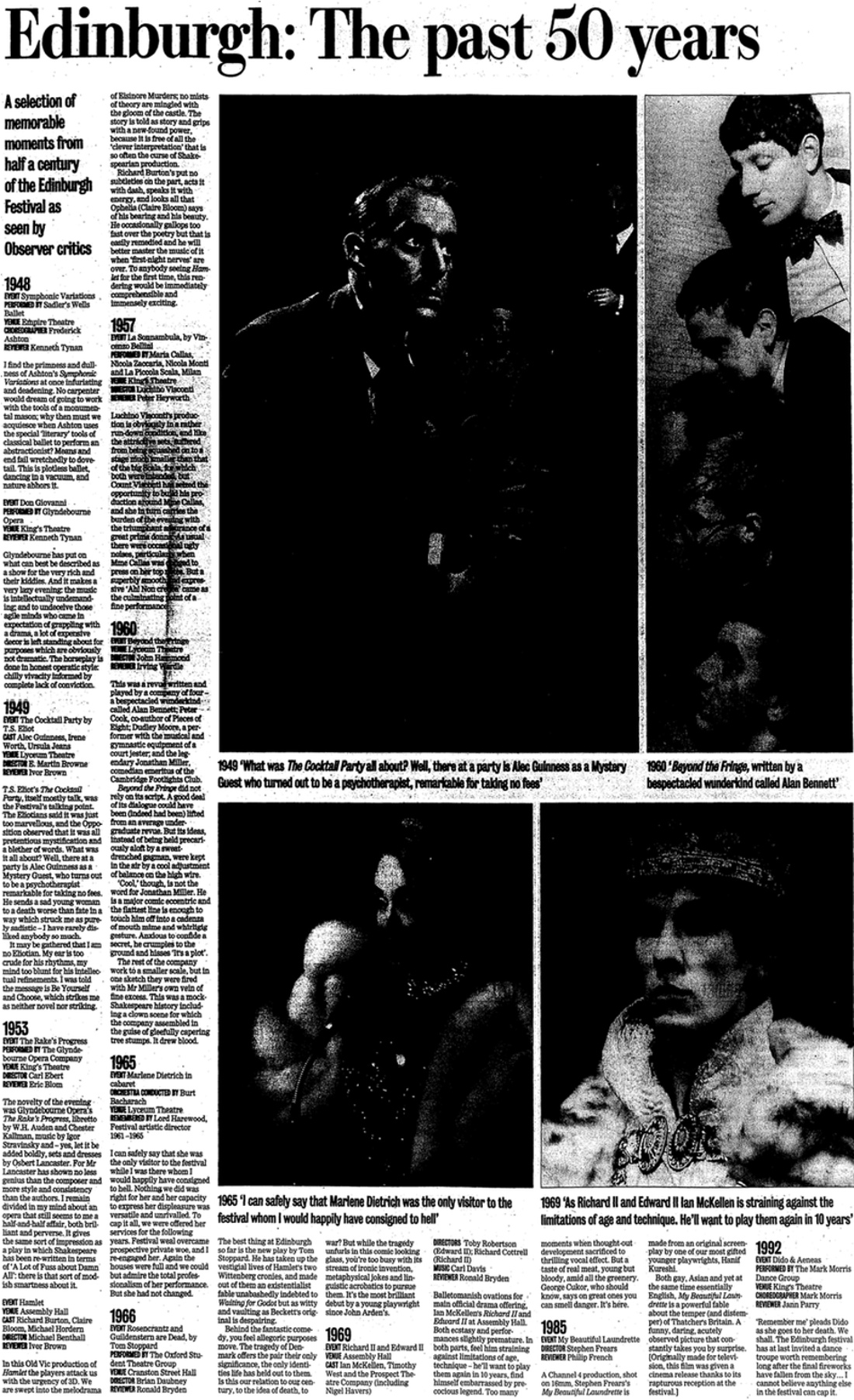 11 August 1996: The past 50 years: A selection of memorable moments from half a century of the Edinburgh festival as seen by Observer critics.