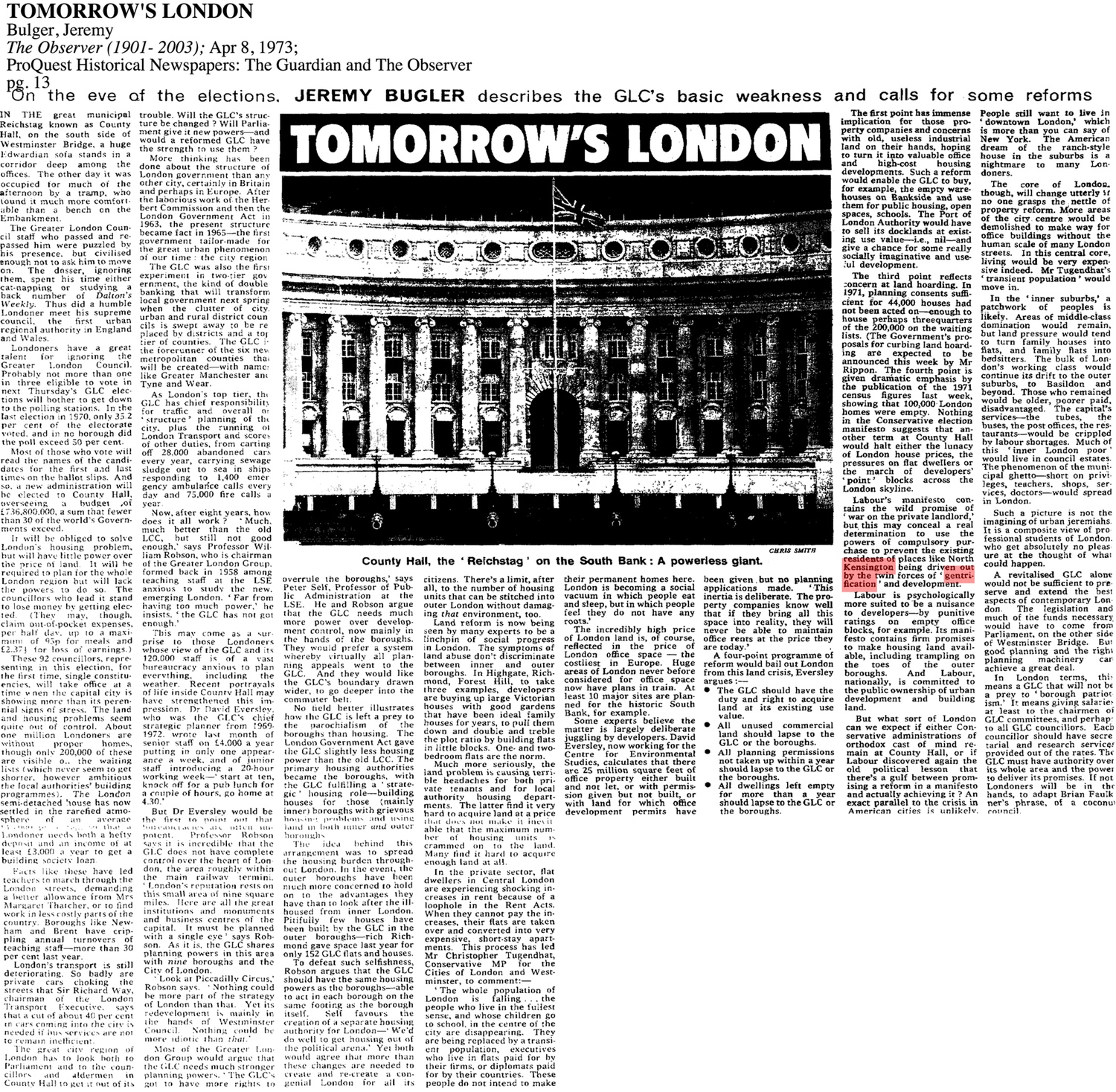 The scarcity of affordable housing, apparently exacerbated by gentrification, led the Labour government to consider the blunt tool of compulsory purchase to control of the capital’s housing stock.