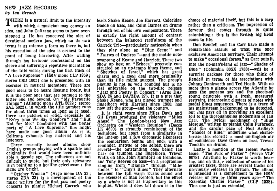 9 August 1965: John Coltrane’s A Love Supreme reviewed - ‘an exercise in musical monotony.’