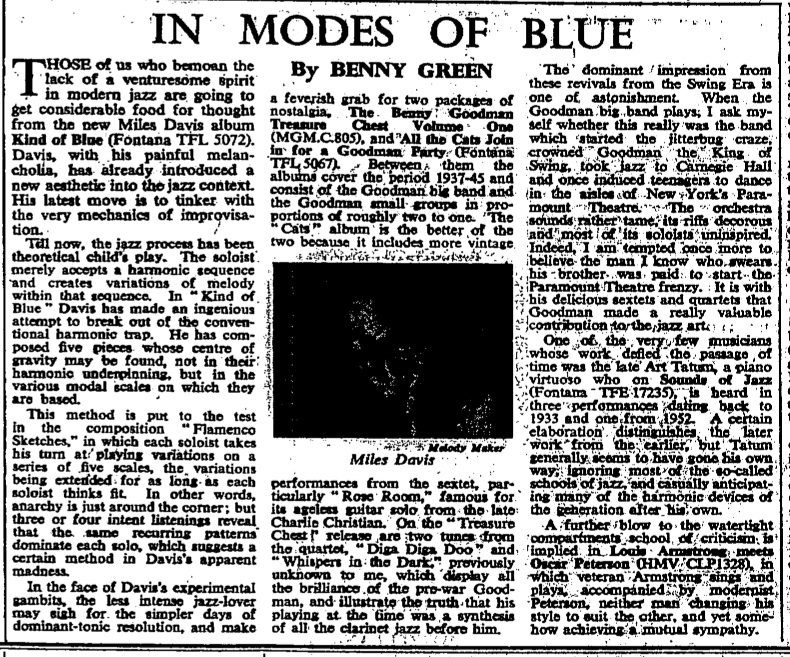 21 February 1960: In Modes of Blue - Benny Green reviews Kind of Blue by Miles Davis.