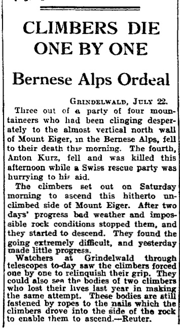 The Eiger: climbers die one by one. Fateful attempt to take the Eigerwand.