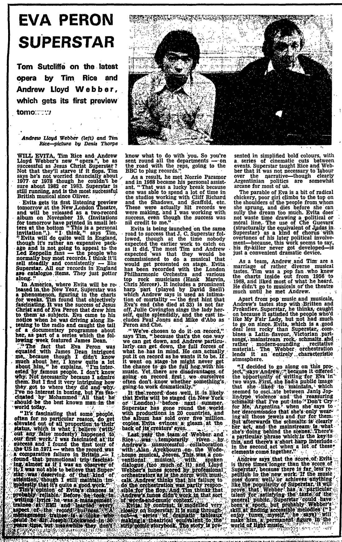 Eva Peron superstar - Tom Sutcliffe on the latest musical by Tim Rice and Andrew Lloyd Webber. How we made Evita.