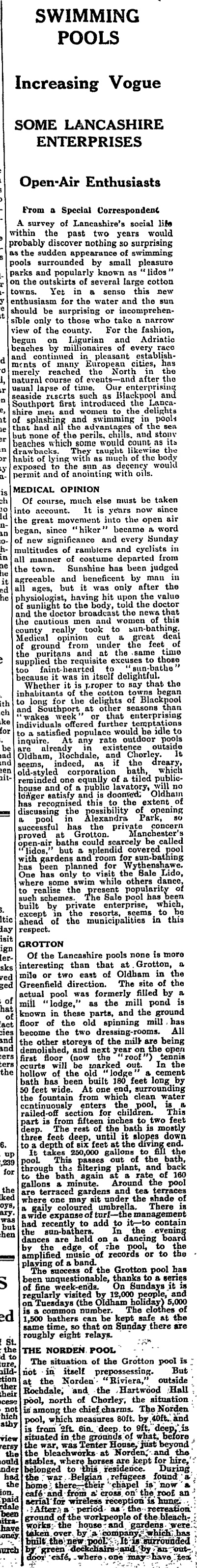 17 August 1935: New enthusiasm for the water and the sun - Increasing vogue for ‘swimming pools surrounded by pleasure parks and popularly known as “lidos”’.