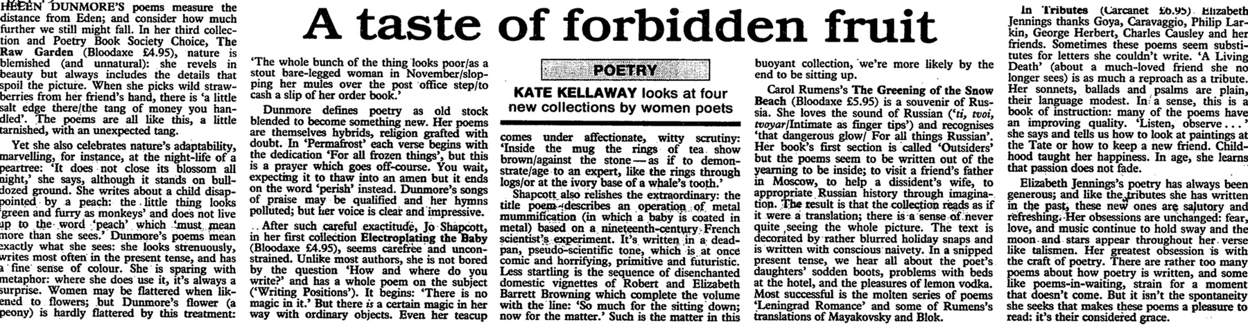 19 March 1989: A taste of forbidden fruit. Kate Kellaway looks at four new collections by women poets.