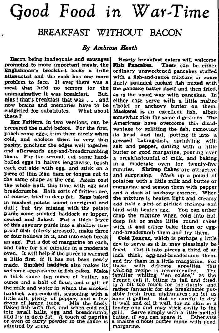 In the 1940s, with Britain again at war, an Englishman’s breakfast didn’t always come with bacon. Eggs baked in mash potato was one wartime dish we told readers about.
