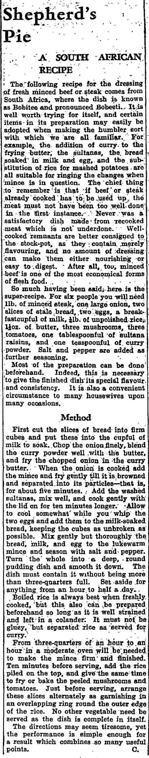 For meat eaters, a recipe for shepherd’s pie, South African style, might have whetted their appetite.