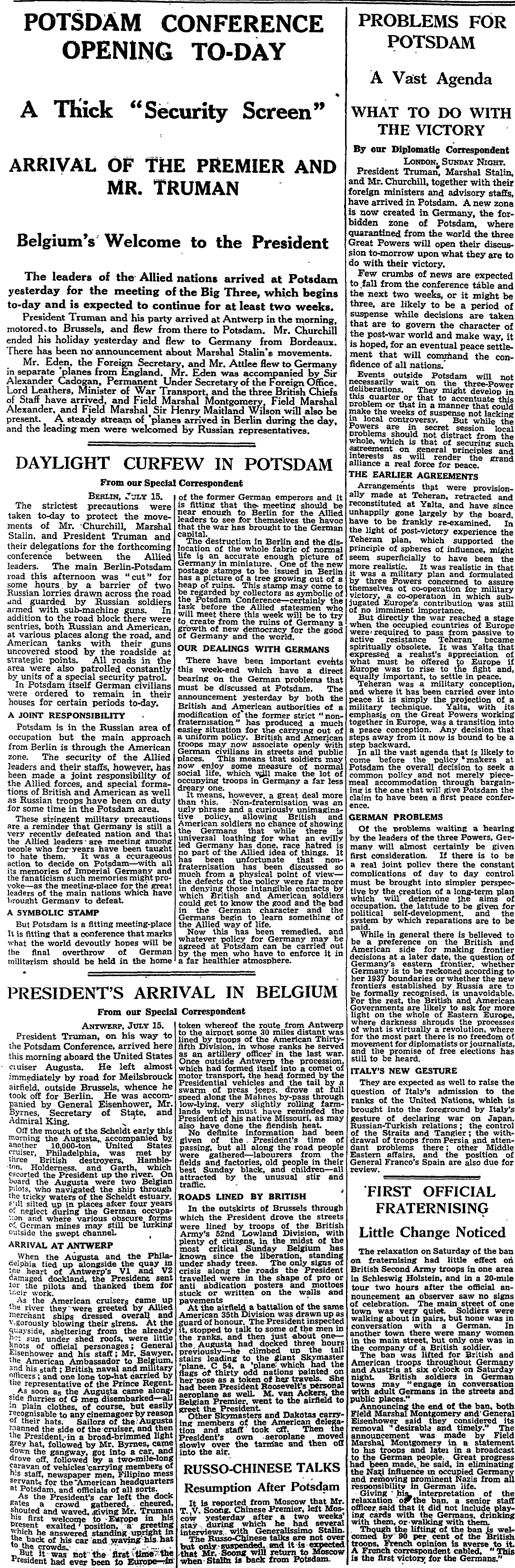 16 July 1945: The Allied leaders - Churchill, Truman and Stalin - meet in Potsdam to discuss a new order in war ravaged Europe.
