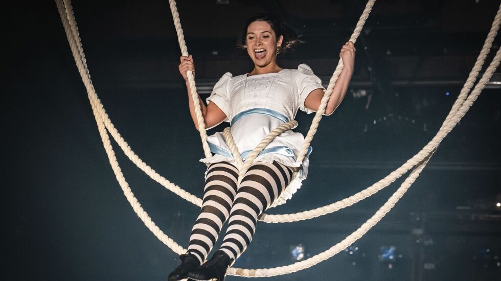 NEW YORK — The first indication that you’re not seeing a run-of-the-mill stage production of Alice in Wonderland is when the White Rabbit appears suspended 30 feet over the stage and does a somersault through a hoop.