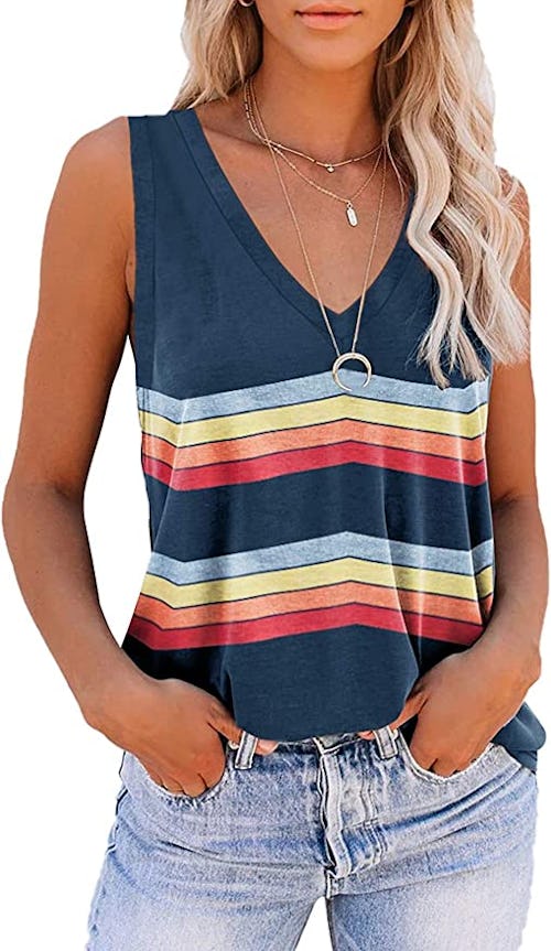 This soft and loose-fitting sleeveless tank top is the perfect summer top, and it's on super sale. Not only is this cotton and polyester blend breathable and lightweight, but it also comes in more than 45 different prints and styles to pair perfectly with your style. Snatch it up while the sale lasts.