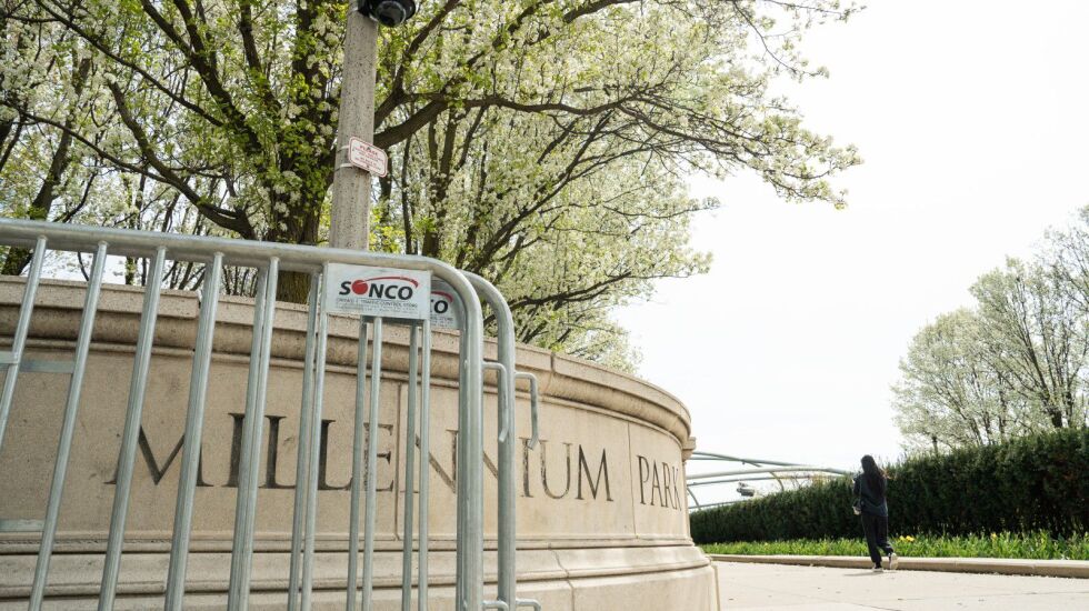 Metal fences and yellow barricades now line the perimeter of Millennium Park to limit entry points into the popular tourist destination.