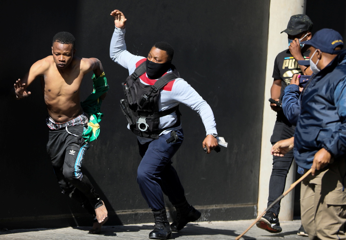 Footage shot by Reuters in the Katlehong township in Gauteng showed police firing rubber bullets at looters to disperse them.