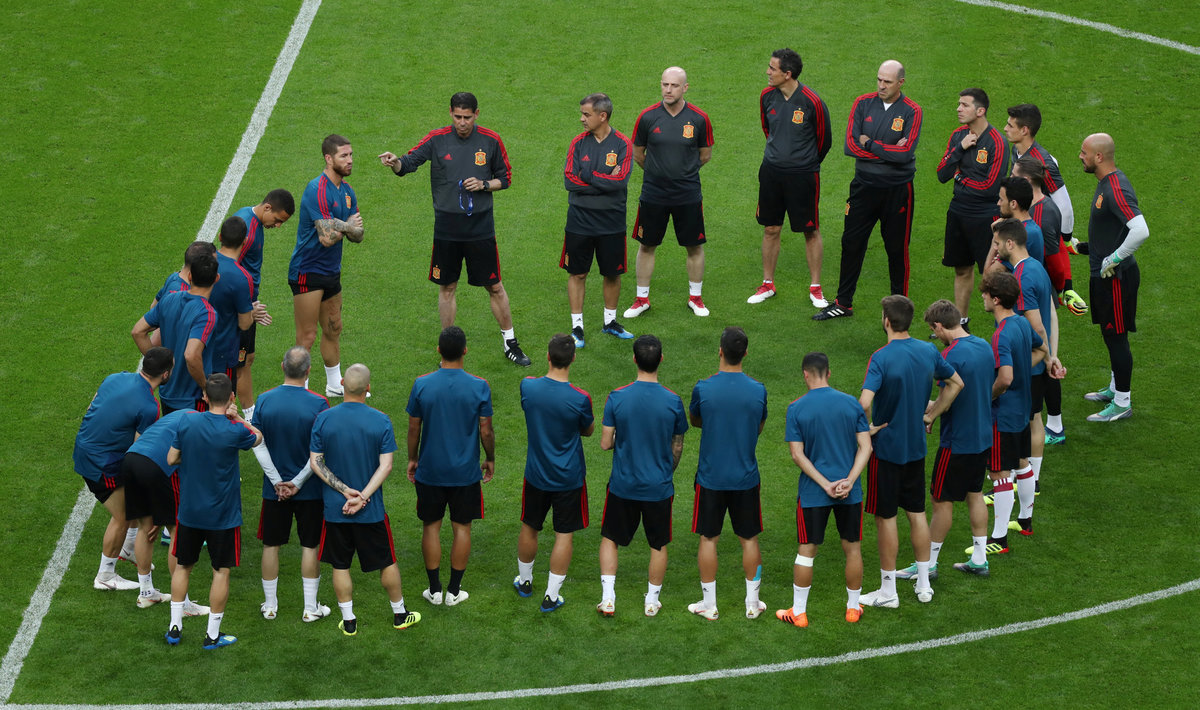 KRASNODAR (Reuters) - The shadow of the dramatic sacking of coach Julen Lopetegui on the eve of the World Cup still hung over Spain as they set off for their final Group B game against Morocco in Kaliningrad after midfielder Saul Niguez openly criticised the decision.