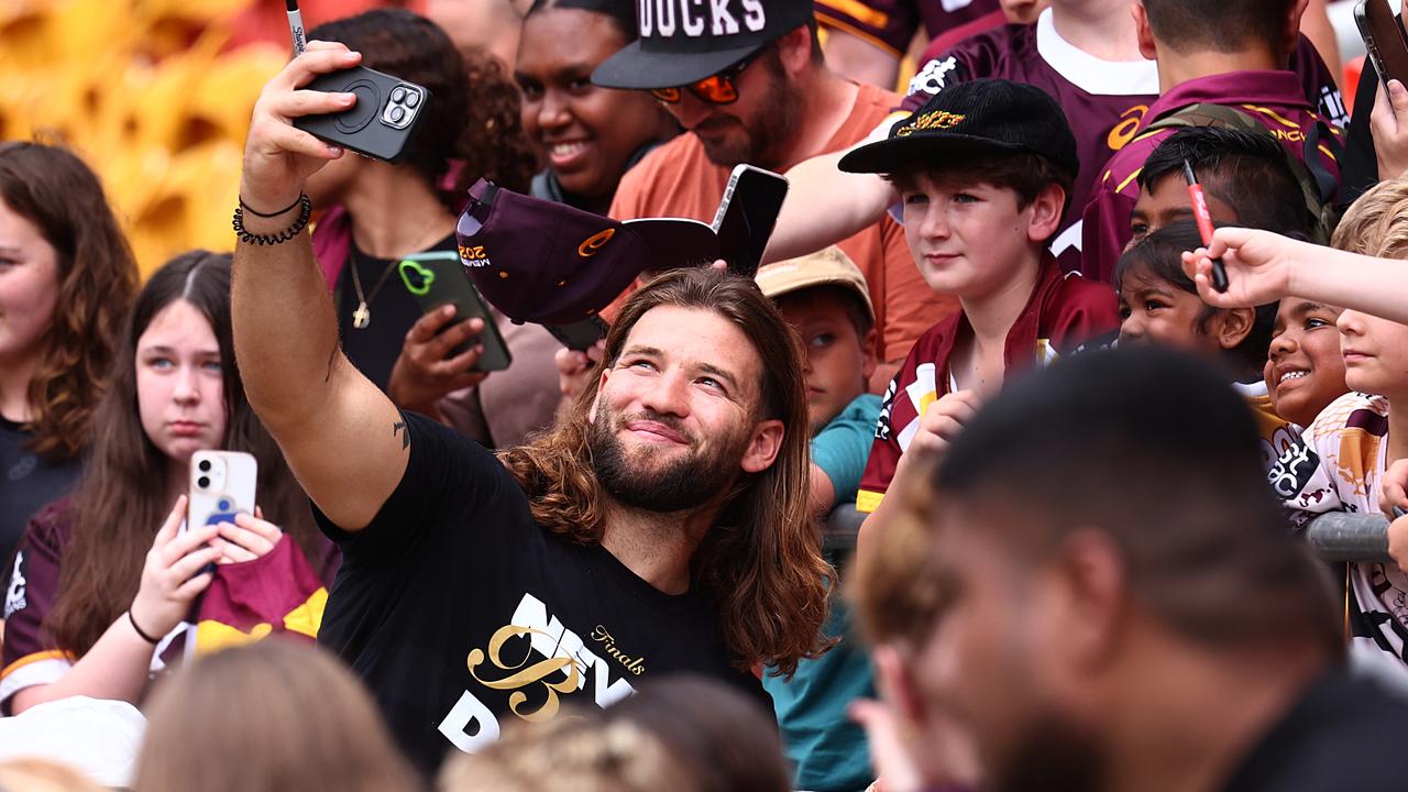 The 27-year-old was mobbed by fans on Wednesday as 6000 supporters watched the Broncos train at Suncorp Stadium before the team prepared to fly to Sydney.