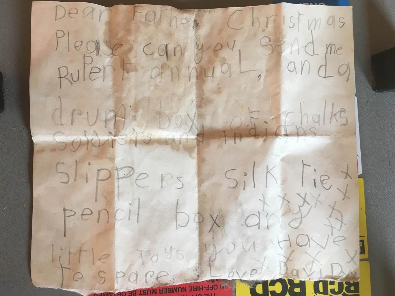 The letter, which Mr Shaw believes is 60 to 70 years old, said: “Dear Father Christmas, Please can you send me a Rupert annual, and a drum box of chalks, soldiers and Indians, slippers and any little toys you have to spare, Love David.”