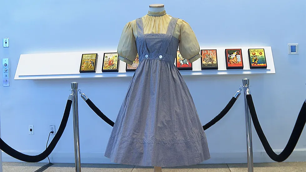 NEW YORK — It’s one of the most recognizable outfits in American movie history, the blue-and-white checked gingham dress a young Judy Garland wore as Dorothy in the classic 1939 movie “The Wizard of Oz.”