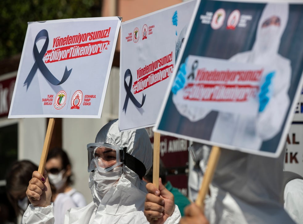 “The fight against the pandemic is being waged by doctors,” says Sinan Adıyaman, head of the board of the main doctors association in Turkey, where he said at least 100 healthcare workers have died of the pandemic. “If there was success against coronavirus it was a success by individual doctors and their hard work and not the government.”