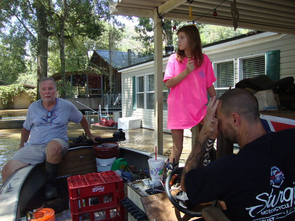 "If my house has water in it, I'm pretty sure my room has water," said 11-year-old London Guidry as she clambered aboard a small motorboat to check the family ranch house with her grandfather and his friend and fellow riverboat pilot, Josh Boogaerts.
