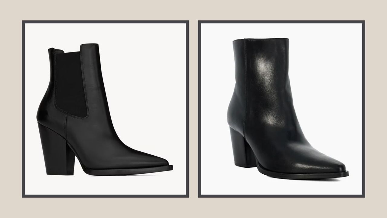 Like her YSL pair, these more affordable Dune London boots are made from smooth leather and feature the same western-inspired shape, with a statement block heel and classic pointed toe. While Claudia’s boots are available in a black and brown suede as well as a classic, black leather, the Dune pair can be picked up a smooth, dark brown leather and a tan suede.