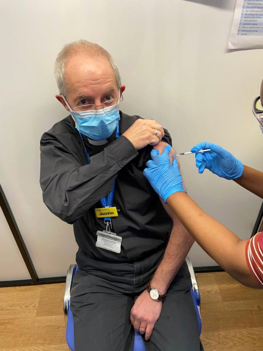 The leader of the Anglican Communion, which includes 85 million people in about 165 countries, tweeted a picture of himself receiving the shot and described the rapid development of vaccines against the new coronavirus as an answer to prayer.