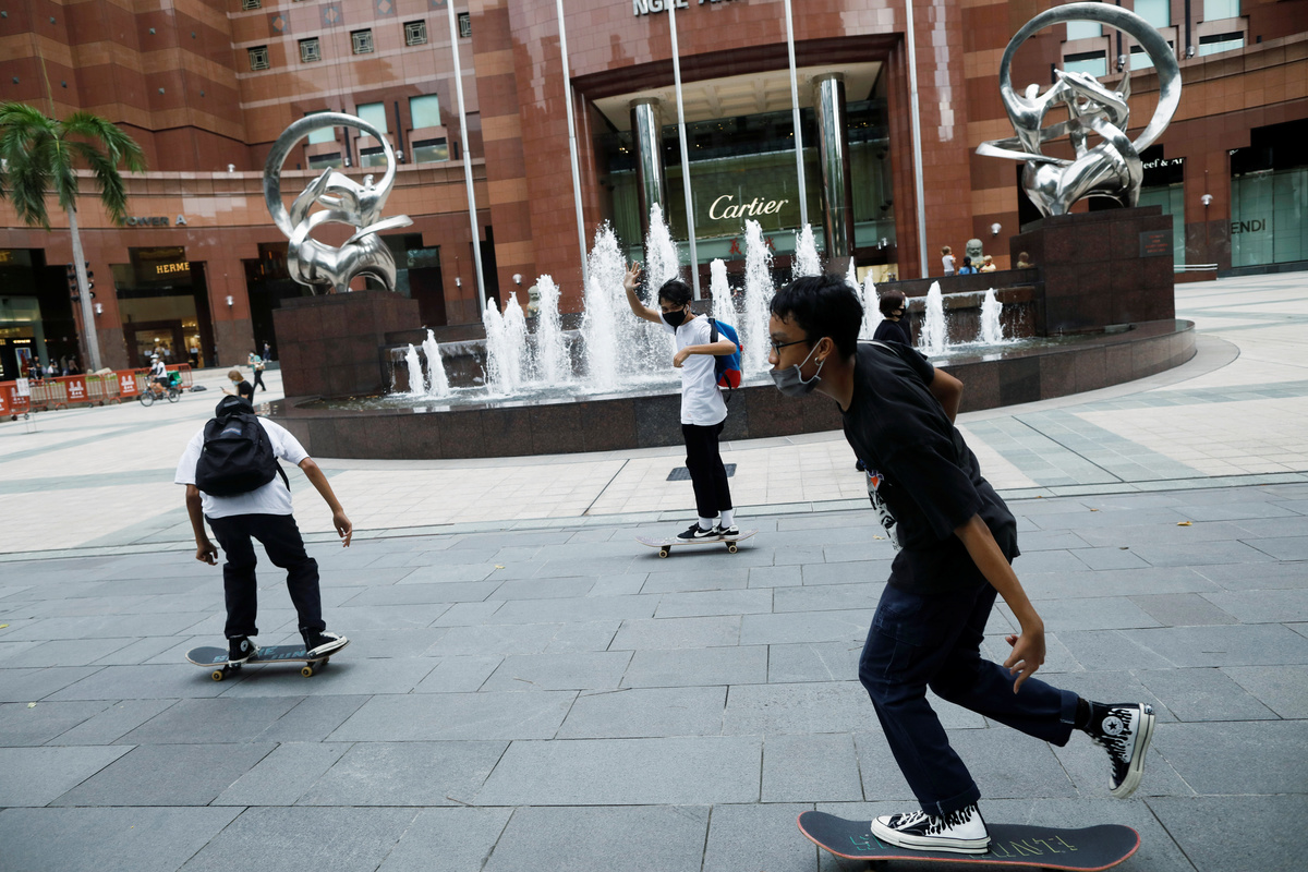People eat at tables installed with plexiglass dividers at a food court in Singapore as the city state reopens the economy amid the coronavirus disease (COVID-19) outbreak, June 19, 2020. REUTERS/Edgar SuPeople eat at tables installed with plexiglass dividers at a food court in Singapore as the city state reopens the economy amid the coronavirus disease (COVID-19) outbreak, June 19, 2020. REUTERS/Edgar SuYouths play with their skateboards at the shopping district of Orchard Road as the city state reopens the economy, amid the coronavirus disease (COVID-19) outbreak, in Singapore June 19, 2020. REUTERS/Edgar SuA youth plays skateboard at the shopping district of Orchard Road as the city state reopens the economy, amid the coronavirus disease (COVID-19) outbreak, in Singapore June 19, 2020. REUTERS/Edgar SuPeople cross a street at the shopping district of Orchard Road as the city state reopens the economy, amid the coronavirus disease (COVID-19) outbreak, in Singapore June 19, 2020. REUTERS/Edgar SuPeople cross a street at the shopping district of Orchard Road as the city state reopens the economy, amid the coronavirus disease (COVID-19) outbreak, in Singapore June 19, 2020. REUTERS/Edgar SuPeople cross a street at the shopping district of Orchard Road as the city state reopens the economy, amid the coronavirus disease (COVID-19) outbreak, in Singapore June 19, 2020. REUTERS/Edgar Su