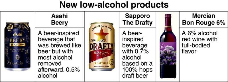 Mercian Corp. is introducing low-alcohol wines. At the end of August, the company plans to release a "Bon Rouge" red wine with 6% alcohol, about half the level of regular wine.