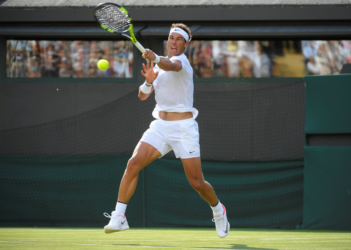 At Wimbledon on Monday, Rafa Nadal, who had not played a competitive match on grass for two years, destroyed Australia's John Millman in straight sets by standing on the baseline and blasting out topspin ground strokes, just as he did to win the French Open a month ago.