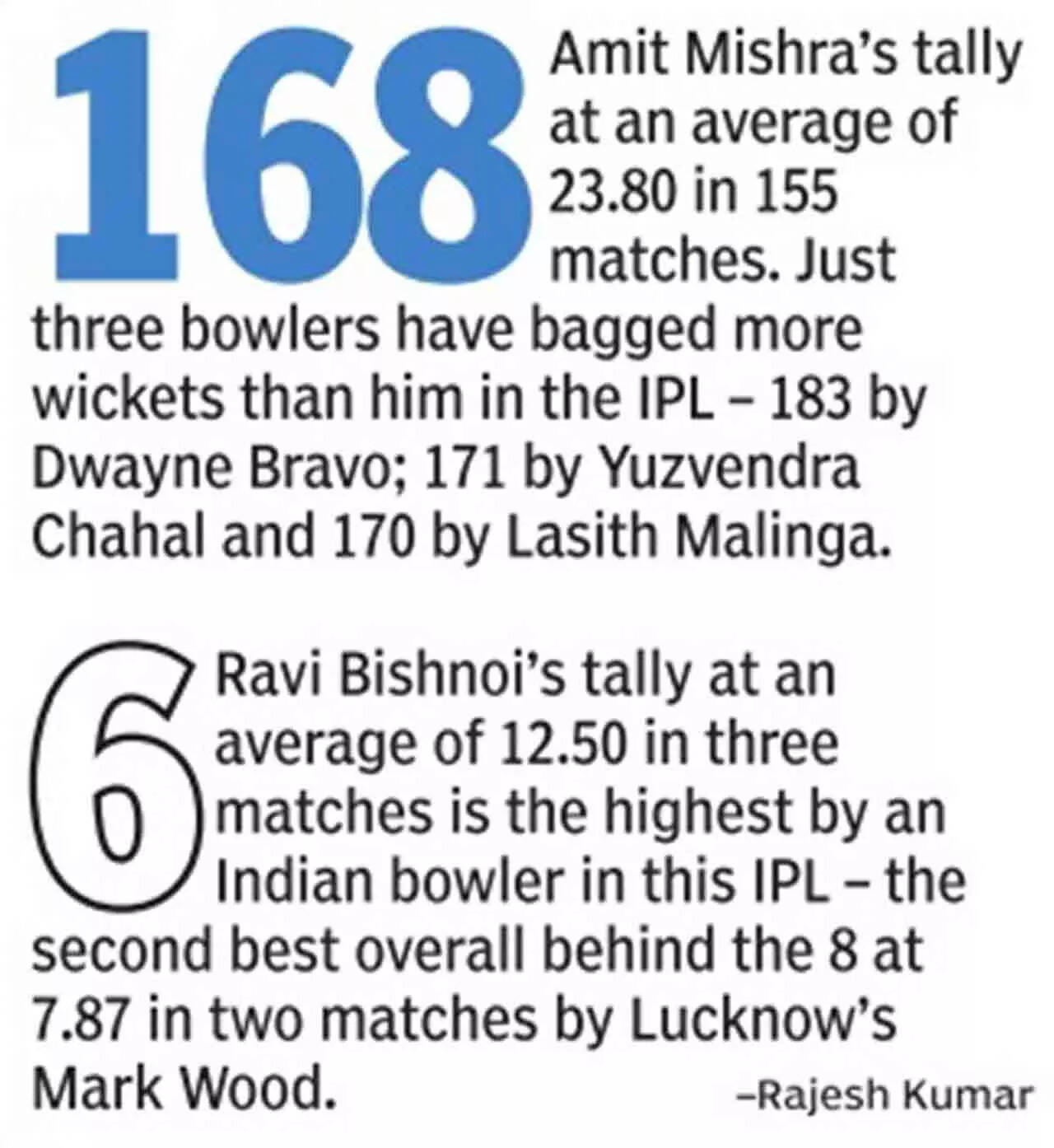 Leg-spinner Amit Mishra's brilliant spell of 2/23 restricted SRH to a small total. Mishra was substituted by 'impact player' Ayush Badoni in the penultimate over.