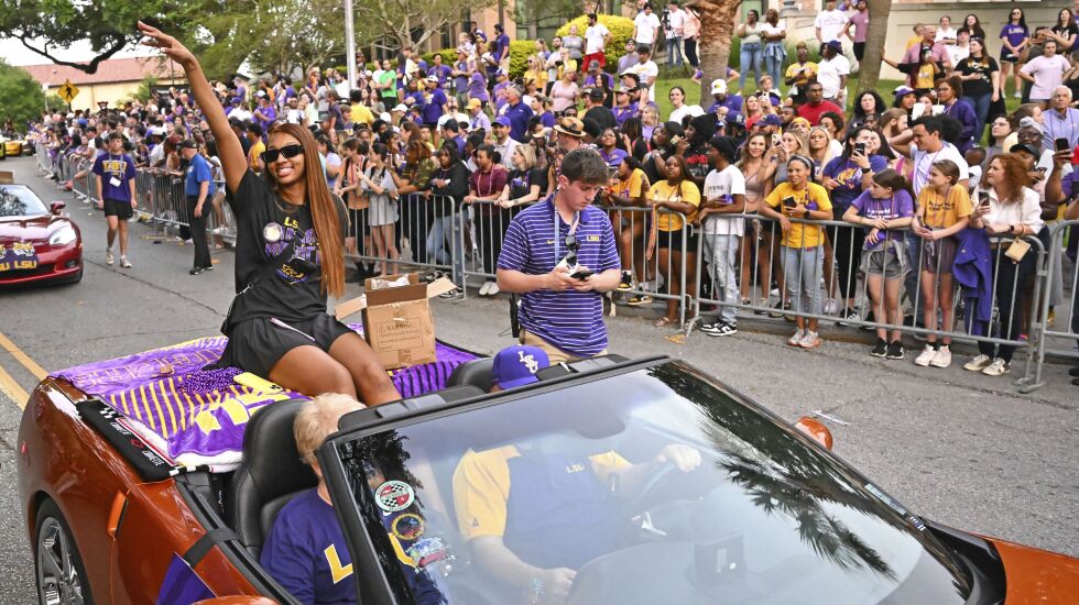 During LSU’s championship parade through campus on Wednesday night, a smiling Reese continued to wave her hand in front of her face, in between waves to cheering fans, as she sat in the back of an orange convertible Corvette.