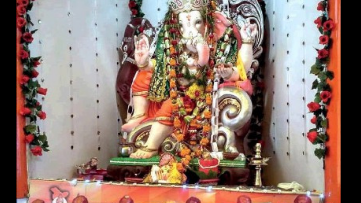 The eco-friendly idol is sitting on a grand swing, swinging to and fro, as devotees come and pay their obeisance. Temperatures and masks are checked before devotees enter the temple premises.