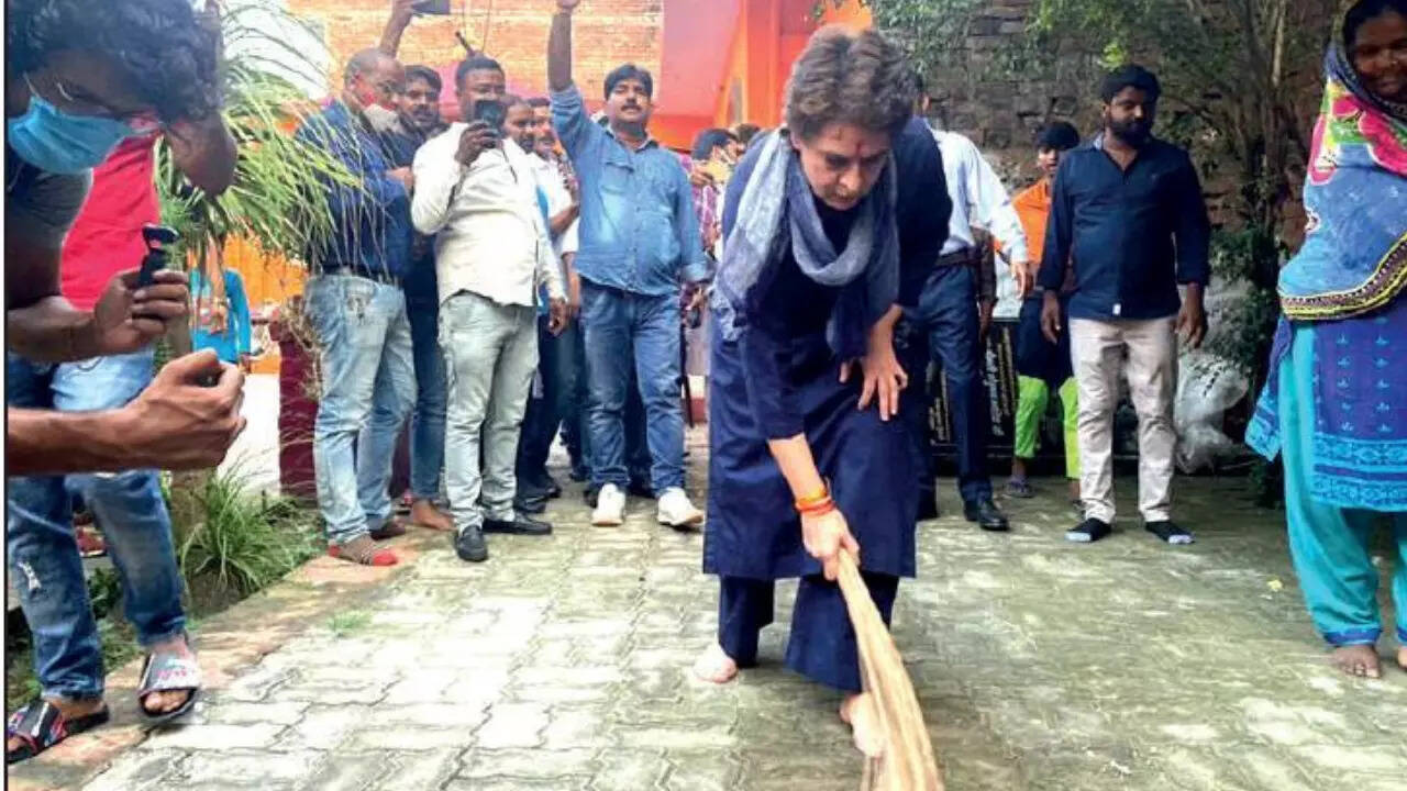 Asserting there was no shame sweeping the floor, Priyanka Gandhi spent time with the sweeper community. “There is nothing wrong in cleaning the floor. Scores of women and sewage staff do it every day. It is a matter of pride, exemplifies the desire to serve and stay humble,” Priyanka said after sweeping the floor of the Valmiki Ashram. Later talking to reporters, she said: “The chief minister’s comment smacks of his disregard for Dalits. Congress will not tolerate this attitude.”
