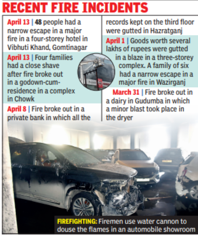 LUCKNOW: A massive fire broke out at a three-storied automobile showroom-cum-service centre in Chinhat area on Monday morning and goods worth crores were gutted in the blaze.