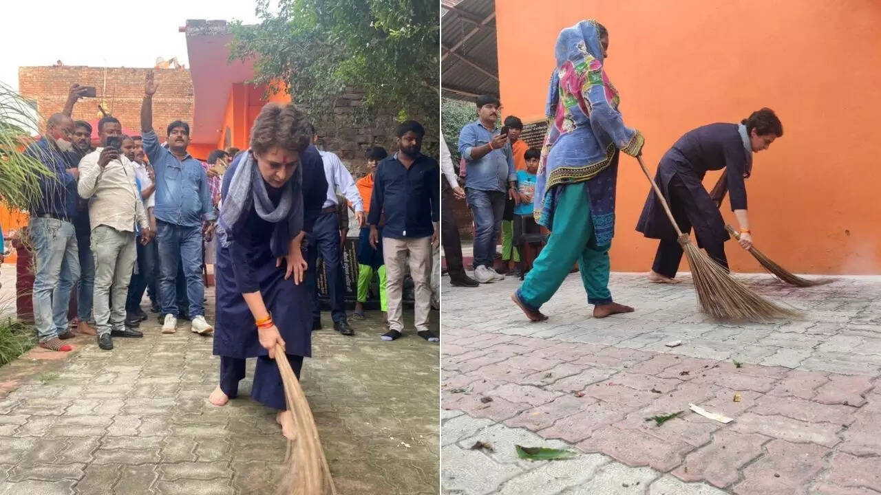 NEW DELHI: Countering UP CM Yogi Adityanath’s purported remark to a TV channel that people of UP will relegate her to sweeping the floor, Congress national general secretary Priyanka Gandhi Vadra headed to a Dalit slum in Lucknow on Friday and picked the broom to sweep the premises of Valmiki Samaj Ashram.