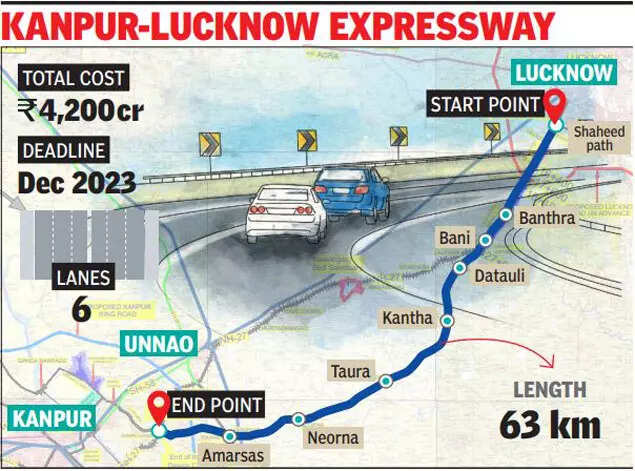 The expressway starts from Amausi airport and will connect with the proposed Ring Road in Kanpur via Unnao. About 13 km of the expressway will be elevated.