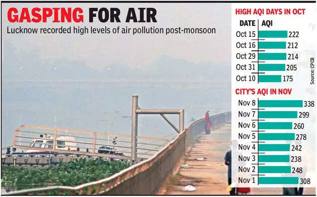 LUCKNOW: Lucknow recorded the highest air pollution level since February this year as it remained wrapped in smog for the fourth consecutive day on Monday post-Diwali.