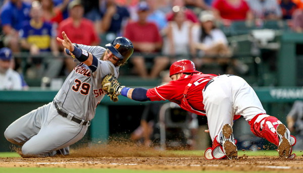 The Tigers missed many early opportunities. They left two men on in the first inning, the bases loaded in the second and two more in the third. In the fourth, Aviles aggressively ran into an out at third base, attempting to go first-to-third on a single to leftfield with nobody out. Then, Jarrod Saltalamacchia was thrown out at home plate on a bloop double by Ian Kinsler. In the fifth, the Tigers got on the board courtesy of Martinez's RBI single but Aviles grounded out with the bases loaded. In total, they went 2-for-10 with runners in scoring position and left 12 men on base.