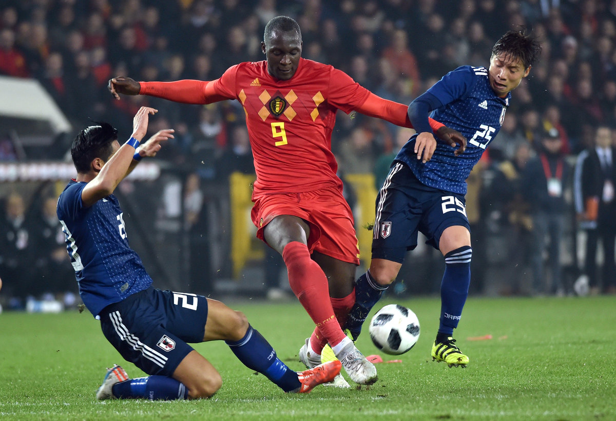 Soccer Football - International Friendly - Belgium v Japan - Jan Breydel Stadium, Bruges, Belgium - November 14, 2017 Belgium’s Romelu Lukaku in action with Japan’s Kazuki Nagasawa and Tomoaki Makino REUTERS/Eric Vidal