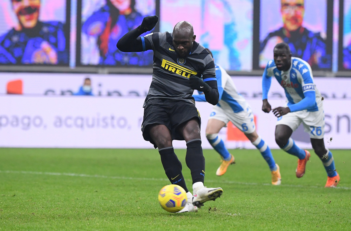 A Romelu Lukaku penalty was enough to give Inter Milan a 1-0 win against 10-man Napoli at San Siro on Wednesday and move the hosts within a point of Serie A leaders AC Milan.