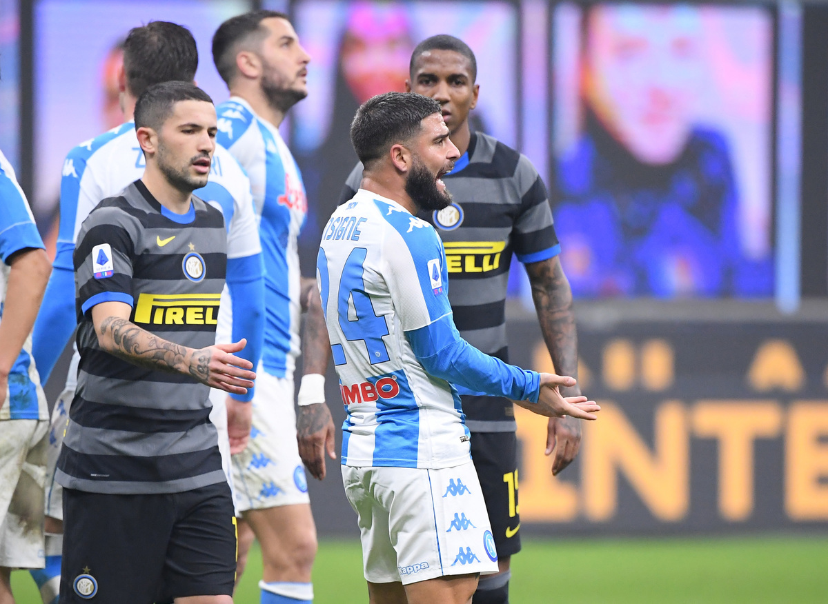 Insigne was furious about the decision and saw red for his reaction, but Napoli finished the stronger as Handanovic produced superb saves on Matteo Politano and Giovanni Di Lorenzo before the woodwork came to Inter’s rescue in the dying minutes.