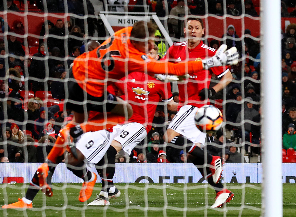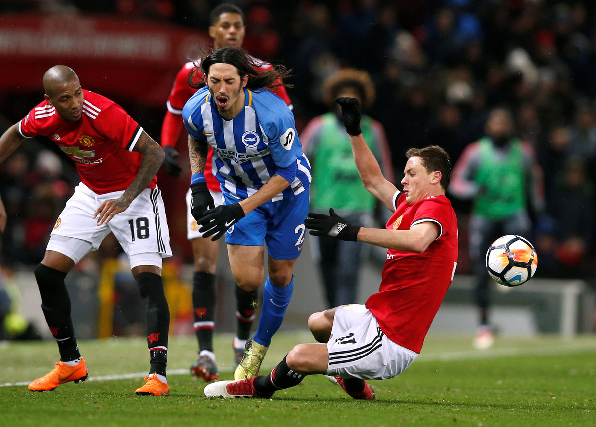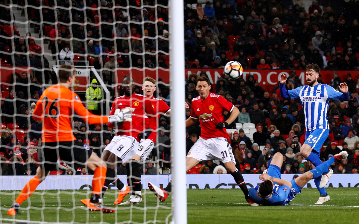 MANCHESTER, England (Reuters) - Headers by Romelu Lukaku and Nemanja Matic earned Manchester United an unconvincing 2-0 victory over Brighton and Hove Albion in a low-key FA Cup quarter-final played in freezing conditions on Saturday.