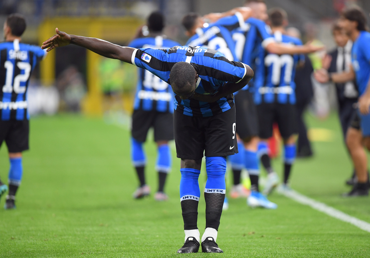 Soccer Football - Serie A - Inter Milan v Lecce - San Siro, Milan, Italy - August 26, 2019 Inter Milan's Romelu Lukaku scores their third goal REUTERS/Daniele Mascolo